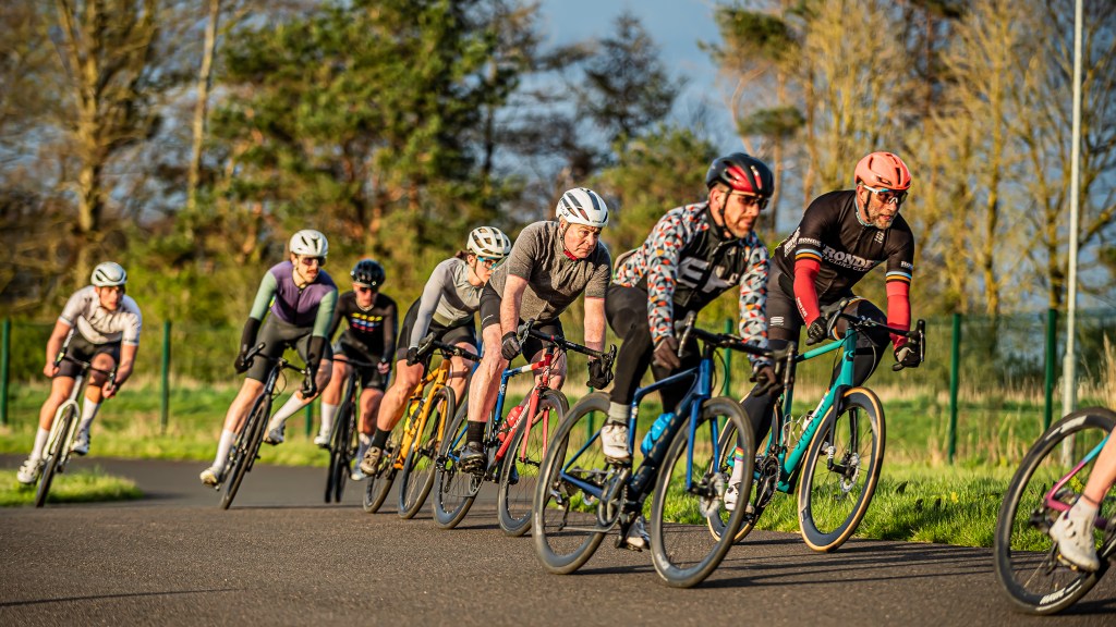 Riders were split into 3 groups of equal ability with the fastest riders setting off first closely followed by the middle group and then the slowest group in a 30 minute race