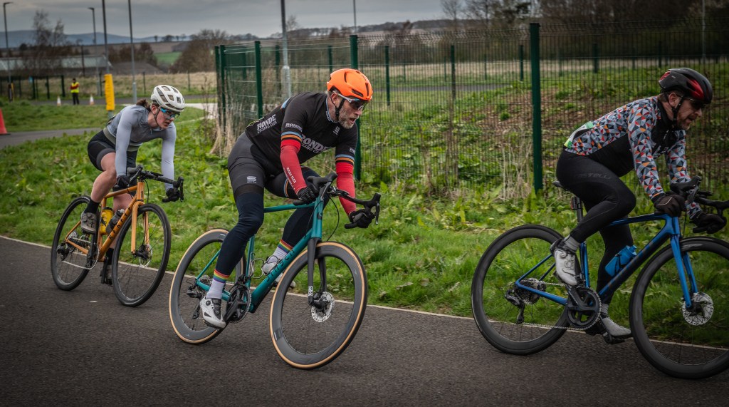 We followed a format used by the Yomp Bonk Crew at the Brownlee circuit where the fast group is 2 laps behind the slow group, tweaked into two 30 minute races due to the shorter length of the West Lothian Cycle Circuit